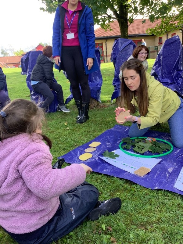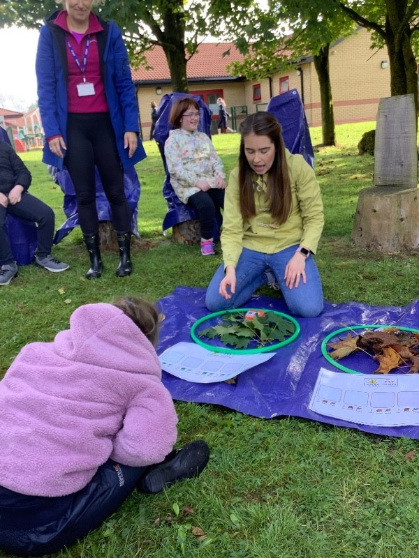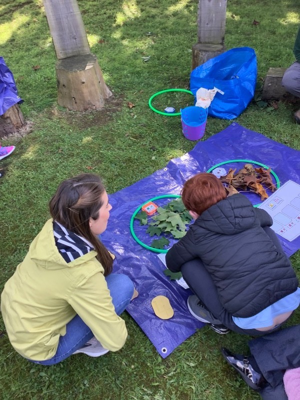 J6 have been participating in forest school sessions within our school grounds. By setting out boundary flags, the class created a boundary where we were to stay inside. The pupils have been exploring autumn changes using their senses and really enjoyed using a senses chart to explore these changes. The class went on an autumn hunt to find green and brown leaves; counted these leaves and compared with a numbers chart. Pupils also collected some sticks to form numerals. J6 participated brilliantly giving the sessions big smiles!