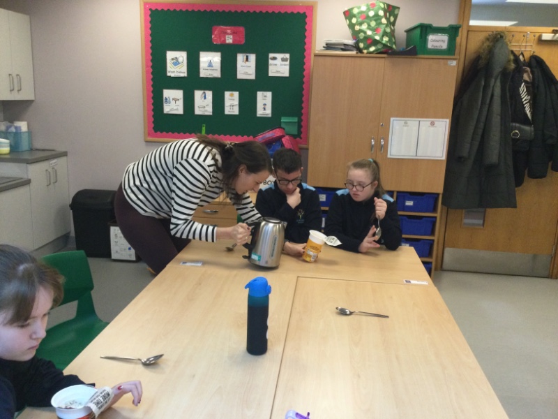 Pupils in S4 have been learning important life skills by participating in weekly Home Economics lessons. Pupils have been learning how to measure, understand nutrition, following instructions carefully and using our senses to explore a range of ingredients. We have also been learning how to use a range of kitchen equipment safely. Pupils enjoy tasting their delicious creations at the end of the lesson.