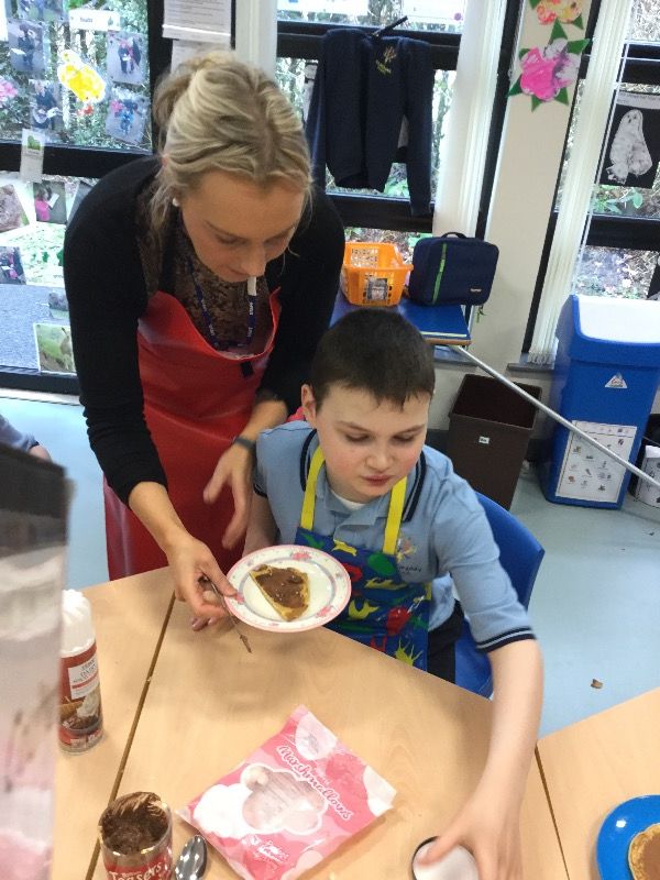 On Pancake Tuesday we had a feast of pancakes. Everyone made pancakes and decorated them in their own style. Before making the pancakes we designed what toppings we would like, what ingredients and equipment we would use and discussed what it should look like and what shape it should be. With a little guidance the pupils followed the recipe and weighed out all the ingredients and mixed and stirred the batter. What a great fun activity it turned out to be!