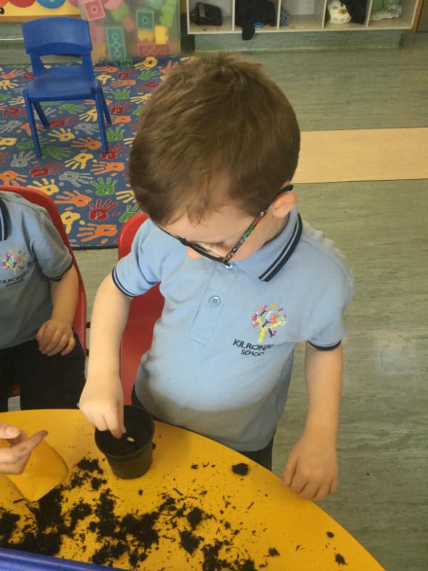 J1 planted sunflower seeds in class and watered them every day. They also painted pictures of sunflowers.