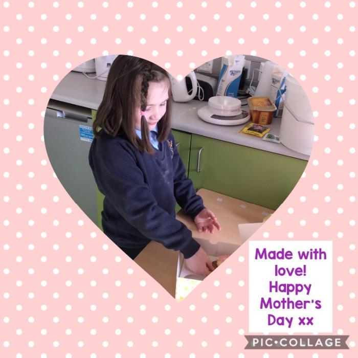 J3 love to bake and decided to use our culinary skills to make some lovely buns for special Mother's Day treats. We cracked the eggs, sieved the flour and added some butter, vanilla essence and sugar. We took turns to operate the electric mixer and loved observing how it combined all the ingredients together. We spooned the mixture into bun cases and took the bun trays to the oven in the kitchen to be baked.